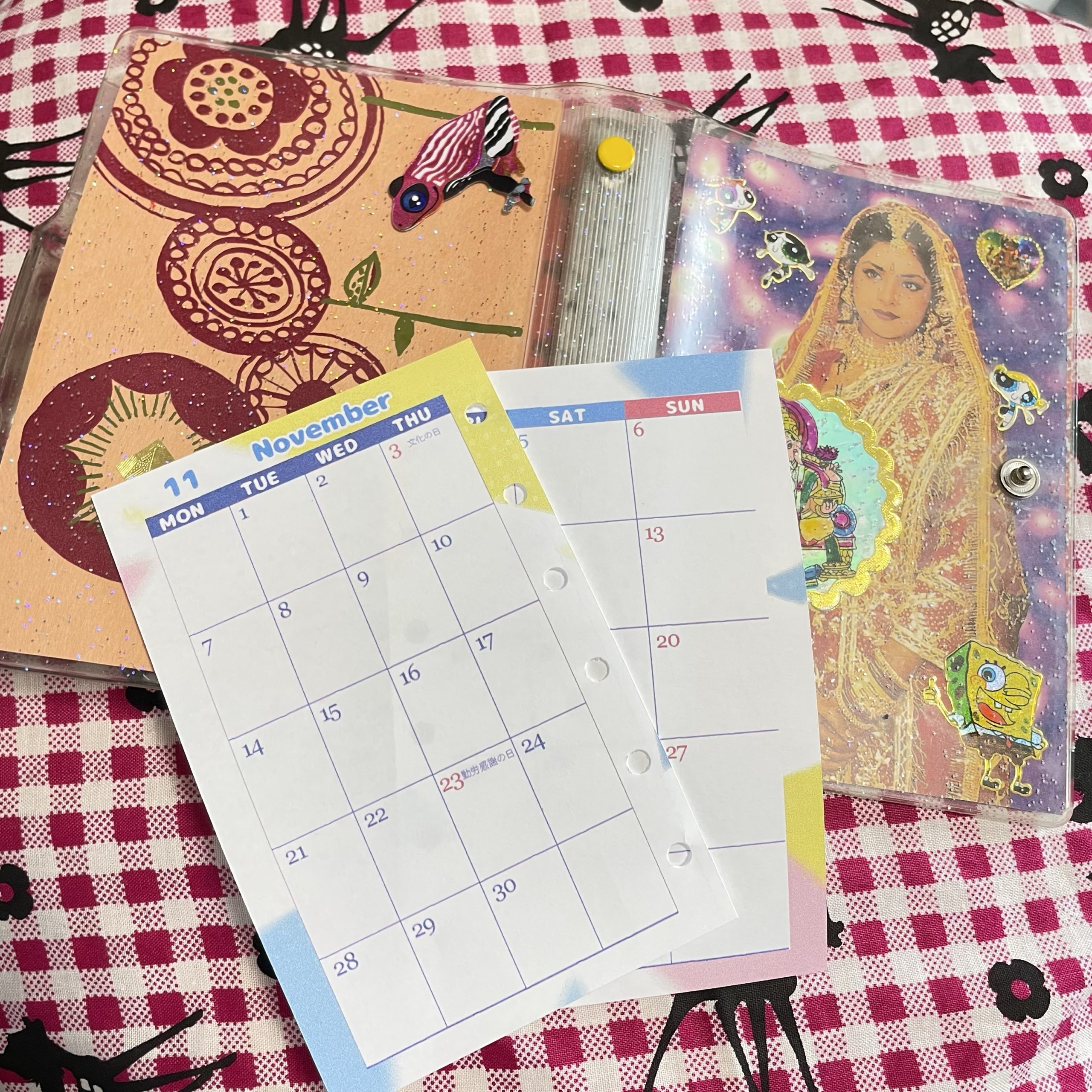 表紙の裏にはいただいたオラクルカードとお気に入りのステッカーたちを入れています。お守り的な感じ。
