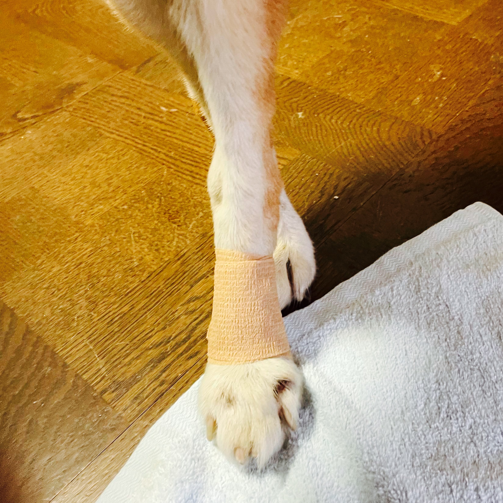 調べたら「ナックリング」といって、老犬介護ではよくある悩みらしい。とりあえず、↑で使ったテープを巻いてみた。